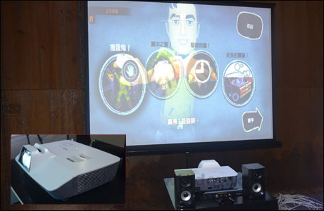 家庭影院方案:用高清藍光DVD播放片源,通過HDMI輸出信號到本機器,在不到1米的距離打出120寸高清大畫面,再配合上知名品牌的一體式音響,形似于茶幾,可將所有設備至于內部,形成一體式家庭影院組合。