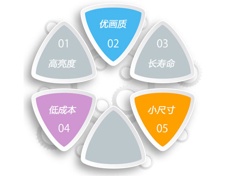 ALPD激光光源的模組化設計最大程度上減少了元器件數目,可以使整個顯示設備的尺寸大幅減小。以微型投影為例,ALPD激光可以以同樣的顯示芯片(TI的DLP)做到以LED光源同類產品的50%體積,而亮度提升200%。