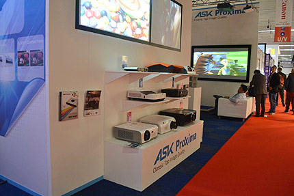 一直緊跟市場主流的ASK Proxima在便攜投影機的研發上同樣有著不俗的表現。參展的L2系列便攜投影產品無與倫比的3D立體影像功能,16:10的寬屏設計,HDMI高清接口,LED光源色彩飽和度高,同時LED投影機可以通過USB和SD卡播放多媒體文件。多變的功能和小巧的設計讓不少參觀者折服。