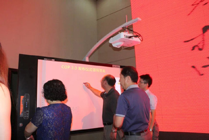 S2280短焦教育投影機(jī)組成的電子白板系統(tǒng)方案參與了會(huì)議的研討,現(xiàn)場(chǎng)演講者通過(guò)系統(tǒng)的互動(dòng)功能,演示出完美的教學(xué)方案。