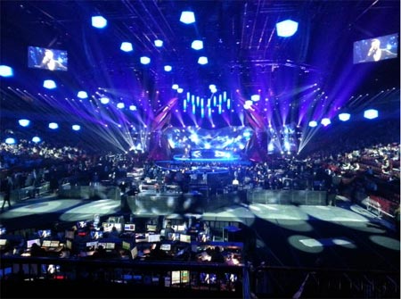長期以來,巴可一直是ESC的技術合作伙伴。ESC是歐洲最大的年度電視直播音樂盛會,而今年巴可對該活動的支持是史無前例的,幾乎成為一場巴可產品的展示舞臺:包括60臺巴可投影機和3臺Encore系統。值得一提的是,晚會采用的28臺HDQ-2K40投影機是全球首款超過4萬流明的投影機,其中13臺通過融合和變形構成極為壯觀舞臺背景,成為此次舞臺設計的亮點。投影內容由Green