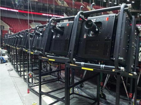 3G和一臺大型控制器的巴可Encore系統饋送到投影機。此外,其他投影內容通過其他視頻處理器饋送到投影機。擁有專利技術的Barco