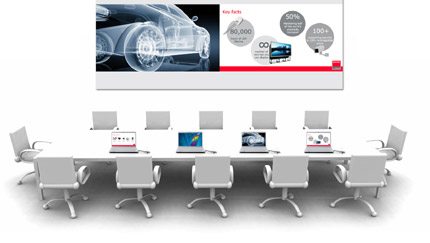 巴可推出的企業(yè)級(jí)中端影像家族包含13款投影機(jī)、ClickShare可立享智能演示系統(tǒng)以及OBLX液晶拼接屏。憑借在高端領(lǐng)域的領(lǐng)先技術(shù),巴可中端影像產(chǎn)品擁有多項(xiàng)專(zhuān)利技術(shù),例如內(nèi)置3D,邊緣融合以及幾何校正等,可以輕松應(yīng)對(duì)協(xié)作會(huì)議室方案、智能禮堂大尺寸投影方案、雙通道背投融合方案、正投弧形融合投影方案、折角投影方案、汽車(chē)模型投影方案、以及高清被動(dòng)立體投影方案等。