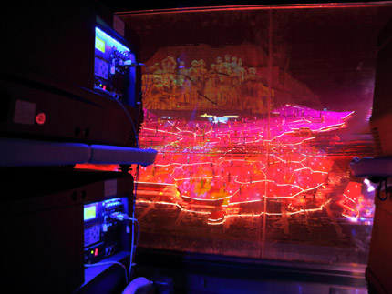 CAD軟件對整個場景的構造和光環境進行建模分析,確定了投影機的精確布局點,通過電腦模擬快速分析出不同安裝方式對最終投影面亮度的影響,同時還可計算出進入觀眾眼睛光線的亮度和分辨率,給出改進方案,巴可幾十年的視頻經驗為整個演出的成功保駕護航。