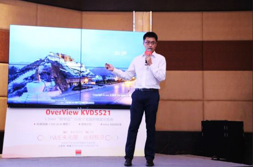 巴可大中華區(qū)產(chǎn)品副總監(jiān)薛峰為來賓講解OverView KVD5521 “極窄邊”55英寸液晶拼接顯示系統(tǒng)