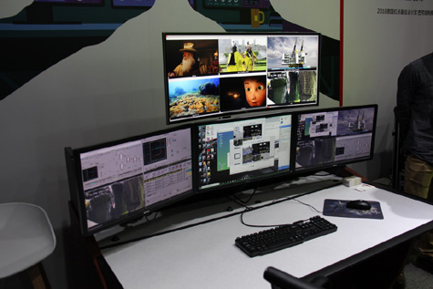 展區一側是Barco OpSpace操作員顯控空間,其通過提供綜合的視圖、全面的控制與交互操作界面使操作員的工作更有效率。演示現場只有1.5米的緊湊操控臺就集成了十幾路信號源,操作員可以靈活的選擇各路信號,隨意拖動放置,或進行局部放大,而所有操作只需要一套鼠標鍵盤即可。OpSpace通過分布式網絡技術實現高效靈活的部署。