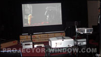 BenQ PE8720、PE7700高端家用投影機視聽鑒賞會現場擺設了兩塊OS-G100 WF202 100英寸地拉幕,分別投射了一臺BenQ PE7700和一臺SANYO PLV-Z4做投影比較演示,而視頻源則采用兩臺HTPC分別連接但播放同樣的1080i和720p電影片斷,首先播放的是1080i“超人總動員”的一段室內環境的家庭爭吵戲,人物的表情和特寫時的細節表現是重點,BenQ PE7700的畫面更偏向暖色調,色彩更濃郁,更符合這部動畫電影畫面“偏紅色”風格,而SANYO PLV-Z4的畫面則更清淡,平面感更強。