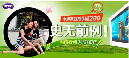 為回饋廣大消費者厚愛,促進寬屏高清3D投影機普及,全球投影機領導品牌明基BenQ將于3月11日鳴響2013年第一聲春雷。屆時,消費者登陸國內(nèi)知名電商網(wǎng)站京東商城,進入明基投影品牌日春雷行動專區(qū),一定會有驚喜發(fā)現(xiàn)!活動當日,近20款BenQ住商兩用、寬屏家用精品投影機同時大促,全場滿千減兩百,最高降幅超千元!春雷乍響,還不快快下單?史無前例的讓利回饋僅此一天。享受明基原廠正品送貨上門,足不出戶就能擁有無比震撼的影音體驗!詳情登陸http://sale.jd.com/act/bdrZiCxTt5agjlMf.html