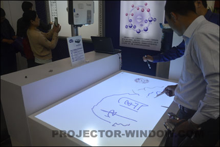 武漢教育展會(huì)現(xiàn)場(chǎng)使用了桌面互動(dòng)投影這一新穎的互動(dòng)模式來(lái)展現(xiàn)最新的MW820ST互動(dòng)短焦投影機(jī)的超凡魅力,小巧精致的MW820ST白色機(jī)身和金屬質(zhì)感強(qiáng)烈的原裝吊架相得益彰,通過(guò)垂直安裝的方式釘在定制的互動(dòng)桌體上,通過(guò)電源/HDMI和USB線即可搭建出一套非常簡(jiǎn)潔易用的互動(dòng)系統(tǒng)。使用者可以用隨配的互動(dòng)筆在桌面進(jìn)行書(shū)寫(xiě)、標(biāo)準(zhǔn)、點(diǎn)擊、拖拽等等操作,甚至試用者玩起了瘋狂的小鳥(niǎo)游戲,試想在一個(gè)70寸的桌面上玩互動(dòng)游戲是多么的震撼。光學(xué)部分來(lái)看,MW820ST標(biāo)稱(chēng)亮度為3000流明,采用了一顆大尺寸魚(yú)眼短焦鏡頭,可在1米的距離投射出95英寸的巨大畫(huà)面,由于采用了0.62英寸的WXGA成像芯片,畫(huà)質(zhì)清晰銳利,顯示內(nèi)容比普通XGA多了30%以上;作為專(zhuān)業(yè)的教育投影機(jī),MW820ST在投影機(jī)相對(duì)脆弱的色輪傳感器部分加了特別的風(fēng)路阻斷機(jī)構(gòu),以降低散熱氣流中粉塵對(duì)傳感器的侵蝕,同時(shí)原裝標(biāo)配的防塵濾網(wǎng),可滿足中國(guó)北方區(qū)域?qū)ν队皺C(jī)抗粉塵性能的要求。 |