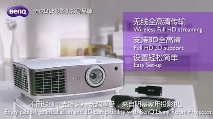 當然這一切得悄悄進行,否則就不能讓老婆感到驚喜了!基于客廳現有布局,要想吊裝投影機,或鋪設相應線材,顯然都不具備可行性。而我需要的投影機必須擁有充分的靈活性。幾經挑選,明基W1500無線家用投影機成為最終的選擇。因為它采用基于5GHz頻段的WHDI™無線數字高清技術,音視頻訊號可無線傳輸,甚至還能穿墻而過,徹底解決了鋪設明線的困擾,另外它還內置2×10W立體聲揚聲器,連音箱都省了。