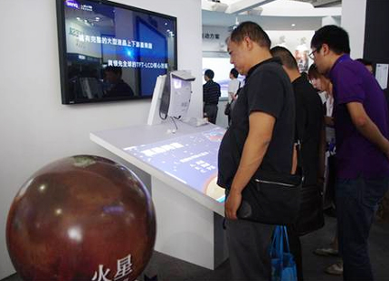 此外,現場還使用了一臺MW853UST做了一個桌面互動顯示方案的DEMO,搭配一個直徑為70厘米的MH740高亮全高清球形投影方案,展現了互動地理課教學系統的先進之處——老師可以在投影機畫面上以互動的方式講解地理課知識點,同時生動形象的圖像會出現在由球形投影模擬而成的地球上面,寓教于樂,印象深刻。