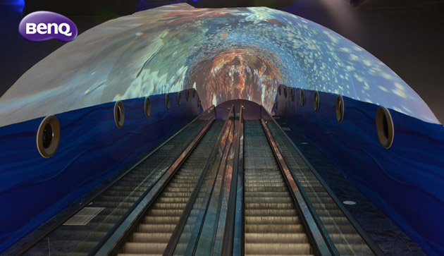 精心打造的海底隧道更是不容錯過的項目,游客可以在這里申請扎營過夜呢。臥于其中,頭上是繽紛絢爛的海魚,旁邊是恍若繁星的水母,耳邊偶爾傳出魚兒躍水的聲音,人與海洋合二為一,在夢里或許也能聽到海魚的輕聲昵語。為了演示出如此逼真的海底世界,明基特地采用了10臺PX9810+高亮投影機,以沉浸式弧形拼接方式,在邊緣融合技術(shù)的作用下帶給觀眾美輪美奐的畫面。這份超現(xiàn)實的魔幻般體驗,相信能讓每一位觀眾都難以忘懷。