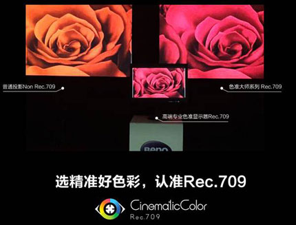 鑒于國際電信聯(lián)盟將 Rec.709定為HDTV的統(tǒng)一色彩標(biāo)準(zhǔn)、影吧硬件設(shè)備行業(yè)也以Rec.709作為色彩標(biāo)準(zhǔn),所以各大電視臺(tái)在拍攝、制作及播放HDTV節(jié)目以及大部分影片在轉(zhuǎn)換成網(wǎng)絡(luò)視頻的時(shí)候,都會(huì)遵照Rec.709進(jìn)行拍攝或者轉(zhuǎn)碼。基于此,我們不難得出這樣的結(jié)論:只有使用達(dá)到Rec.709色域空間且同時(shí)具備色彩認(rèn)證的專業(yè)投影機(jī),才能完整地再現(xiàn)原汁原味的影片原色。比如,明基旗下的色準(zhǔn)系列家用投影機(jī)包括W2000、W3000等在內(nèi)的數(shù)款新品,都是遵循Rec.709國際色域標(biāo)準(zhǔn)而設(shè)計(jì),可在百余寸的全高清投影畫面中,真實(shí)地還原出人眼所能識(shí)別的色彩,并以此受到了包括滕華濤導(dǎo)演在內(nèi)諸多電影制作人的一致推崇。