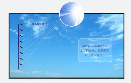 而為了能夠在客廳帶來堪比影院的視覺效果,明基智能超投電視i920還配備了專業的黑柵抗光屏幕,它擁有特殊光學鋸齒結構與抗光圖層,當上方的光線照射在屏幕上,會被黑色圖層吸收。經過上百次實驗,數據證明它可以阻隔93%以上的環境光干擾,無論是陽光燦爛的白日,還是昏暗的夜間,保證你所看到的畫面始終清晰、鮮活、細膩。
