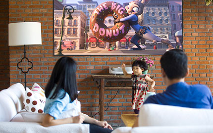 成長只有一次,永遠別錯過孩子的童年。如果客廳里有一臺超投電視,你就可以陪孩子看電影、玩體感游戲,與他一起成長。明基智能超投電視采用內反射光機,放在電視柜上就能投滿100吋的巨幅黑柵抗光屏幕,阻隔93%以上的環境光,在相當于4臺50吋電視的大畫面上演1080P全高清畫面。同時由于采用反射光源,相較于液晶屏幕的直射光源,更加保護眼睛。不論是連接XBOX/PS4打體感游戲還是觀看擁有2000部電影庫存的內置影庫,都能為小朋友提供更加舒適的感官體驗!