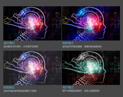特別值得一提的是其中的演示模式和電影模式。演示模式,采用的是造價更為昂貴的16:10寬屏顯示,不僅投影距離短,僅需2.02米就能實現60吋的畫面投射,而且,比之4:3屏幕,它對當下主流APP的UI界面兼容性更高,觀看體驗更為舒適;而電影模式則是專門針對高清視頻播放而調校的畫面,讓員工在工作之余也可用投影機看一場電影,獲得更好的使用體驗。