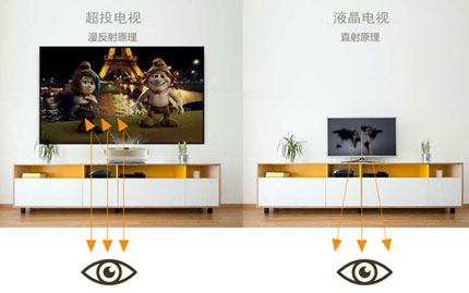 老王還比較了超投電視和傳統家用投影機,他說:“同樣是反射光源,但常規的投影機卻并不適合于在客廳使用。”老王家里有專門的一間房是做成暗室的,遮光簾、吸音棉一樣不少。家用影院投影機對于室內環境光要求極高,只有在暗室才能夠獲得更好的觀看質量。而智能超投電視明基i920,為了在白天的自然光線下也能夠呈現出飽和的色彩,清晰銳利的畫面,采用了黑柵抗光屏,可阻隔93%以上的環境光。厚度不足3cm,邊框僅1cm,超薄的設計,更具科技感,固定于墻上,無論是較之傳統電視機還是投影機的屏幕,都更為精巧大氣。
