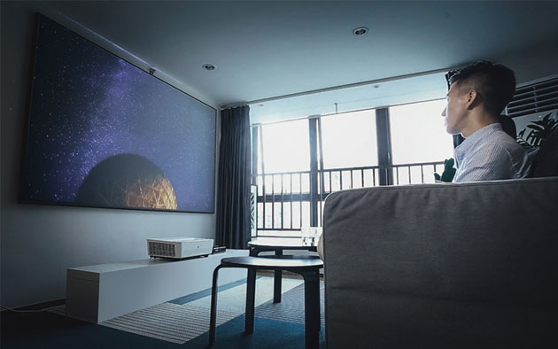 明基激光超投電視還妙在它有80/90/100/120四種屏幕尺寸可選,小客廳也能裝。想象下這樣的場景,當這座城市華燈初上,你披著月色回家,沖個澡,換上家居服,打開明基激光超投電視,放開四體,癱在沙發上,體驗1080P高清大屏帶來的影院級震撼視效,在明暗分明的光與影、絢爛清亮的色彩中,體驗另一種生活,豈不快哉。