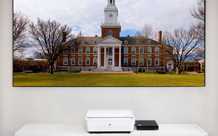 現(xiàn)代人越來越重視家居環(huán)境的統(tǒng)一,家里的一物一飾無不精心挑選,所以,在明基激光超投電視i950L的外觀設(shè)計過程中,也特別重視與不同家居環(huán)境的兼容性,以期能讓未來生活在設(shè)計中變得更智能和更易用。明基激光超投電視i950L堅持清美學(xué)設(shè)計理念,以直上直下流暢的線條搭配純白機身的精簡設(shè)計,與簡歐、現(xiàn)代、美式等等各種現(xiàn)代裝修風(fēng)格都百搭;同時,考慮到目前市場上電視柜的標準深度大約都在40cm左右,明基i950L還特別將機身寬度限定為35cm,比電視柜小的機身,既可有留白的美感,又能避免因機身凸出易被誤碰的問題。