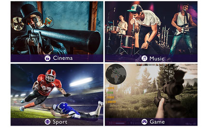 同時,W1120家用投影機還具備電影、音樂、運動、游戲四種音效模式,在低中高頻分別作了細微處理,使得音響效果更立體,體驗逼真臨場感。