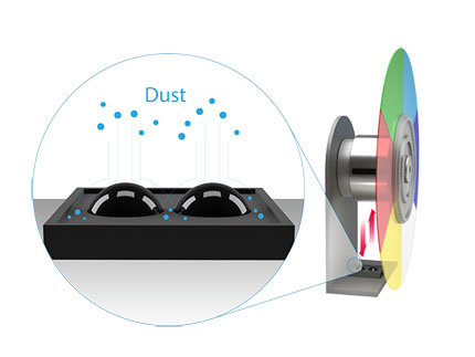 短焦機型DX808ST與DX825ST,分別配備了凸型紅外色輪與霍爾磁感應色輪,防塵效果強,減少后期維護成本。