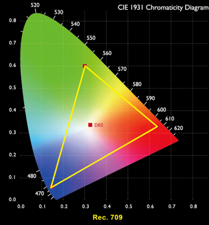 1990年,國際電信聯(lián)盟推出了統(tǒng)一的HDTV(高清數(shù)字電視)標(biāo)準(zhǔn),將Rec.709作為電影電視拍攝及發(fā)行的標(biāo)準(zhǔn)色域。