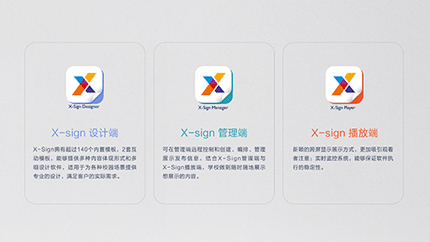 X-Sign2.0軟件系統(tǒng)分為管理端、設(shè)計(jì)端和播放端,管理端集中控制分散在各區(qū)域的顯示屏,并且能夠開設(shè)不同權(quán)限級別的賬號;而設(shè)計(jì)端擁有數(shù)百套特別定制的精美顯示模板,無需設(shè)計(jì)基礎(chǔ)就能上手操作,做出心中美觀大方的顯示內(nèi)容;終端的播放設(shè)備支持無網(wǎng)絡(luò)狀態(tài)的USB播放,解決網(wǎng)絡(luò)不穩(wěn)定帶來的罷工情況。而且在2018年1月份,