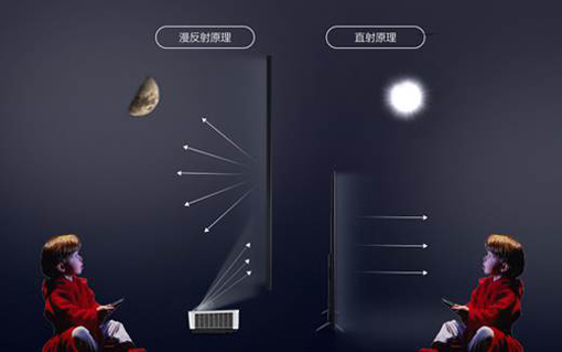 投影機需要將光源投射至另外一個成像面,形成漫反射。反射光源和直射光源相比,對眼睛的影響要溫和得多,但其中亮度損失是可以預見的,因此光源亮度的質量格外重要。