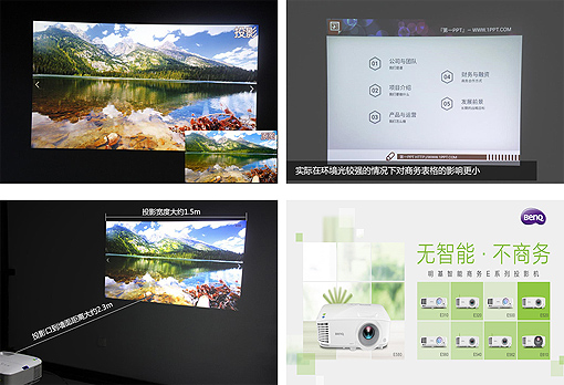 明基智能商務系列投影機焦段完善,根據實際情況調整安裝方式,大小空間都能投,比如短焦機種E610。