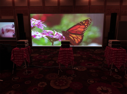 會議同期,佳能(中國)有限公司在毗鄰酒店的東方賓館舉辦“色彩佳能 精彩人生”2014佳能博覽會。此次博覽會大量采用了LCOS投影機作為宣傳媒體,再次印證了佳能LCOS投影機能完全勝任任何專業級別的展覽展示應用的實力。