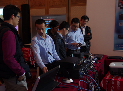 北京力創昕業科技發展有限公司技術人員在現場通過PPT演示與講解,以即時的數據向觀眾展示了兩種顯示技術的投射效果,并通過一副副各種熟悉色調高清晰圖片的對比顯示,觀看實際效果有說服力地顯示了3LCOS投影技術無縫無柵格細膩顯示、真正的色彩亮度、高線性灰階以及佳能投影鏡頭的優勢。現場反響熱烈。