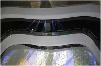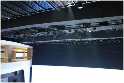 然而在實(shí)際項(xiàng)目調(diào)試時(shí),工程師遇到了巨大的挑戰(zhàn),由于佳能LCOS投影機(jī)采用頂級(jí)光學(xué)性能的投影鏡頭,因此墻幕使用的10臺(tái)投影機(jī)在換用超長(zhǎng)焦鏡頭時(shí),投影機(jī)的亮度和標(biāo)準(zhǔn)鏡頭相比,肉眼幾乎看不出亮度損失,這本是設(shè)計(jì)師和工程師求之不得的好事,然而,煩惱卻因此而來(lái)......這又是為什么呢?原來(lái)都是地幕惹的“禍”,巨大的扇形地幕由于采用電動(dòng)水平往一邊拉的開(kāi)啟方式,投影幕布在采用較高密度的材料時(shí),由于重量過(guò)大,幕布兩側(cè)拉力機(jī)構(gòu)沒(méi)有足夠的力量使投影幕布完全繃平,由于重力作用,幕布發(fā)生形變往下垂,使幕布不能在關(guān)閉時(shí)收進(jìn)隱藏的幕盒里,為了解決這個(gè)問(wèn)題,幕布結(jié)構(gòu)工程師便把幕布換成輕質(zhì)透光紗幕,這邊問(wèn)題倒是解決了,但是卻給投影系統(tǒng)工程師出了一個(gè)大難題!這樣一來(lái),地幕和墻幕的增益相差巨大,經(jīng)過(guò)現(xiàn)場(chǎng)實(shí)測(cè),地幕光損達(dá)到了35%,如何保證墻幕和地幕之間的亮度一致性就成了頭疼的問(wèn)題。