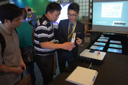 更為值得一提的是,本次卡西歐推出的UST系列新品可以事先通過USB或者無線將PC連接投影機,將資料保存到2G內置存儲器,無需轉換格式,實現無PC投影。除了能用遙控器操作外,卡西歐還提供了一個叫做C-Assist的APP,可以用手機或者平板控制投影儀,預覽智能終端上的文件、投影攝像頭畫面、投影網頁等,讓商務教學更為靈活多變。