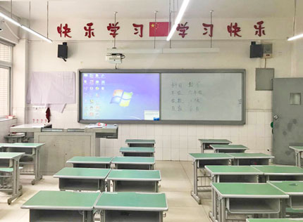 該校所使用的卡西歐XJ-UT255投影機(jī)亮度高達(dá)3100流明,分辨率為1280×800(WXGA),光源壽命長(zhǎng)達(dá)20000小時(shí)。由于是超短焦投影機(jī),所以可以在距離墻壁很近的位置安裝,13cm的距離即能投影出60英寸的畫面,老師不再擔(dān)心身體遮擋而在黑板上留下陰影。具備5秒快速啟動(dòng),支持自動(dòng)梯形校正和光學(xué)變焦,安裝和使用都非常便利。