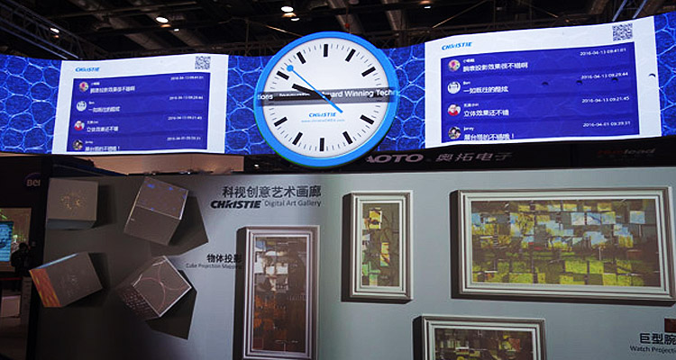 2016年視聽展上,科視主打適用于文化資產(chǎn)和臨場(chǎng)感娛樂(lè)的多種先進(jìn)視覺(jué)解決方案,精美的展區(qū)再次贏得業(yè)界關(guān)注。其中,一幅長(zhǎng)達(dá)12米的巨型腕表栩栩如生,由5臺(tái)高達(dá)30000流明亮度、4K分辨率的科視傲嬌產(chǎn)品Boxer