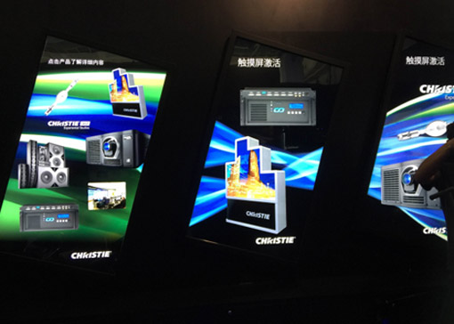 65英寸交互式平板組成,按人字形排列, 并由科視Christie Pandoras