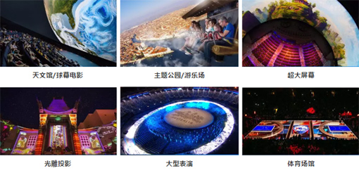她的應用范圍如此之廣……天文館/球幕電影、主題公園/游樂場、超大屏幕、光雕投影、大型表演、體育場館。