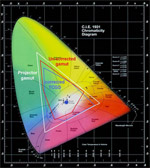 基色和合成色的精確顏色作為目標色域所必須的是通過調整投影機色彩處理器運算處理,對每個基色混合一定數量的靠近色。例如:調整紅色,投影機將混合一點綠色或藍色給圖像,這個圖像就展現出靠近紅色有個陰影。這種有效的調整可以根據圖像亮度來防止其他任何顏色來扭曲圖像