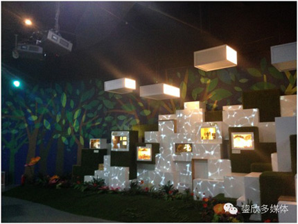 主要設(shè)備:EIKI LC-XB200i投影機(jī),定向揚(yáng)聲器,感應(yīng)設(shè)備,攝 像頭,服務(wù)器,媒體播放器