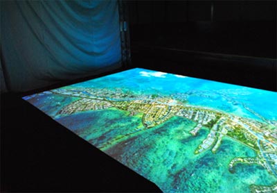 除此之外,地面投影方案也非常的具有創意,將四臺愛普生EB-Z9850W高端工程投影機垂直固定在搭建好的支架上并垂直向地面投影,再利用圖像處理技術整理畫面,最后呈現在觀眾眼前的就是地面上的明亮大畫面,這個解決方案算的上是非常具有創意,人們通?吹耐队爱嬅嬉话闶窃趬Ρ谏系,而通過這個解決方案,可以讓人們在地面上看到清晰明亮的畫面,這個方案非常適合電子沙盤,地理信息系統,模擬仿真系統等應用場合,感受到與墻面投影不一樣的逼真效果。