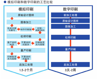 數字印染印刷與傳統的模擬印染印刷相比,不但縮短了工藝而且不需要制作印刷版,使耗電量和水使用量削減了40-75%,還大量減少了墨水和化學品的使用。數字印染印刷機所具有的降低環境負荷及高效印染印刷的特點,促使已步入成熟階段的印染行業再次走向革新。