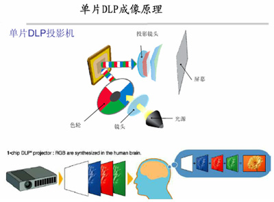 另外,這種差異也來(lái)源于投影技術(shù)的選擇。目前,市場(chǎng)的投影產(chǎn)品大多使用了DLP投影技術(shù),這種技術(shù)也是目前投影市場(chǎng)上功能最豐富的顯示技術(shù)之一,這種技術(shù)能夠?yàn)橄M(fèi)者提供最為清晰明亮的畫(huà)質(zhì)。而為了增加投影機(jī)亮度,這種常見(jiàn)的單片DLP投影機(jī)中,廠家會(huì)在色盤(pán)處增加白色色輪來(lái)實(shí)現(xiàn)白色亮度的增加,所以在這種變化中,色彩顯示的能力會(huì)顯著下降。特別是在顯示彩色圖像時(shí),單片式DLP投影機(jī)。