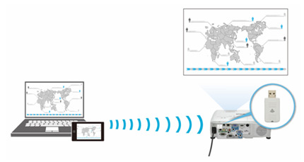 作為商務易用投影機升級版的旗艦產品,自身兼具的無線投影功能是不得不稱贊的又一大亮點,CB-W18投影機可以選配ELPAP07無線網卡,輕松實現無線投影功能,使用者不僅可以通過電腦實現無線演示,更能夠通過智能手機或者平板設備安裝“Epson