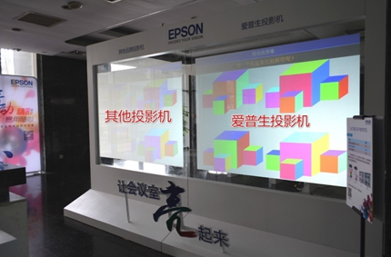 通過巡展現(xiàn)場的投影效果對比板發(fā)現(xiàn),雖然現(xiàn)場的投影環(huán)境并不理想,但是愛普生商教投影機卻明顯比其他品牌投影機的的投影表現(xiàn)更加出眾,即使在光照強烈的室內(nèi)投影出的畫質(zhì)依然非常清晰明亮。愛普生商教投影機能輕松應對各種光線對投影畫面的干擾,讓用戶看到的畫面更清楚、色彩更鮮艷。