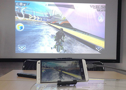 EPSON TW6600在HDMI1口上標注有MHL,只有此接口能支持MHL。把HDMI接入投影機的HDMI口上,USB接入投影機的USB接口上用作為供電。再接入手機后無需任何操作即可顯示。接上手機后,打開手機游戲畫面,投影機同時可以投射手機上的畫面,同時可以播放聲音。 |