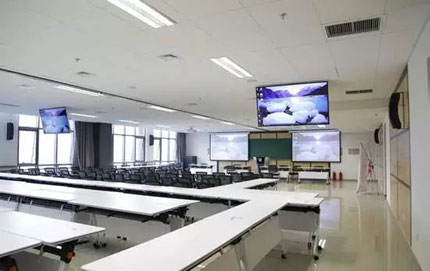 為了給學生們創造良好的語言環境,學校也是煞費苦心。在新落成的綜合教學樓里,小型班級教室使用4500流明的愛普生工程投影機CB-4950WU,大中型教室使用亮度更高的CB-G6550WU,這兩款機型全部支持高清分辨率,