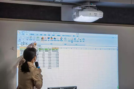 過去老師講課要寫好幾黑板的板書,不僅內容多看不清,而且散落的粉筆粉塵還會對室內空氣造成影響。現在配置了愛普生CB-1420Wi工程投影機之后,老師只需輕輕一點,開機即可進入白板功能,投影屏幕分分鐘變成電子白板,最多可添加至