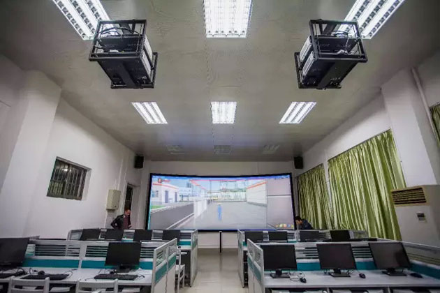 據(jù)該校老師反饋,虛擬仿真實驗室承擔著多重角色,既要完成科研工作又要兼顧日常的教學使用,因此就需要對投影設備進行靈活運用。愛普生工程投影機滿足了3D投影、拼接融合、弧形幕投影三種需求,打造出豐富多樣的解決方案,呈現(xiàn)出美輪美奐的真實效果,可以讓用戶更直觀的感受投影效果。