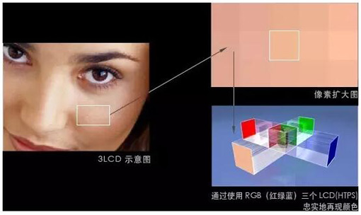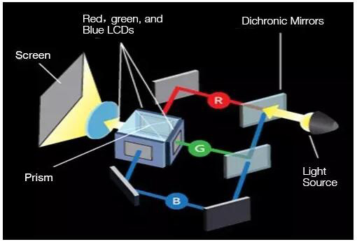 3LCD是“3片高溫多晶硅液晶面板”的縮寫。光源產(chǎn)生的白光被投射到一組分光鏡上,分解為基本的紅、綠、藍(lán)三色,每片3LCD面板接收信號(hào),并且顯示圖象;這3個(gè)單色圖象通過棱鏡合成全彩色圖象,也就是我們最終看到的生動(dòng)全彩的圖象。