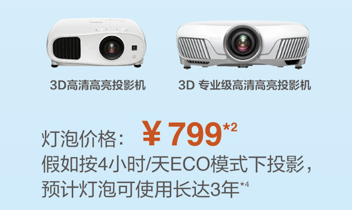 投影機(jī)的成像效果和其燈泡息息相關(guān),燈泡亮度將隨使用時間的增加而逐漸降低,這一直是眾多影音發(fā)燒友的煩惱。愛普生推出的投影機(jī)原廠燈泡在ECO模式下可以保證高亮度投影的同時降低功耗,在此模式下假如按4小時/天投影,預(yù)計燈泡可使用5-6年*3*4,愛普生力求通過精湛技術(shù)為用戶提供持久、穩(wěn)定、優(yōu)質(zhì)的視覺體驗!